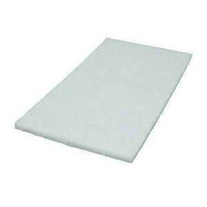 These rectangular white, extra-fine buffing pads are used to polish your floors to a high shine. The soft, polyester fibers are ideal for use on soft finishes and low traffic areas on marble floors, VCT, and ceramic tiles. Each pad measures 14″ deep by 28″ long, and is 1″ thick. In order to extend the life of your pads, we recommend changing your pads out often and rinsing them out with water after each use.