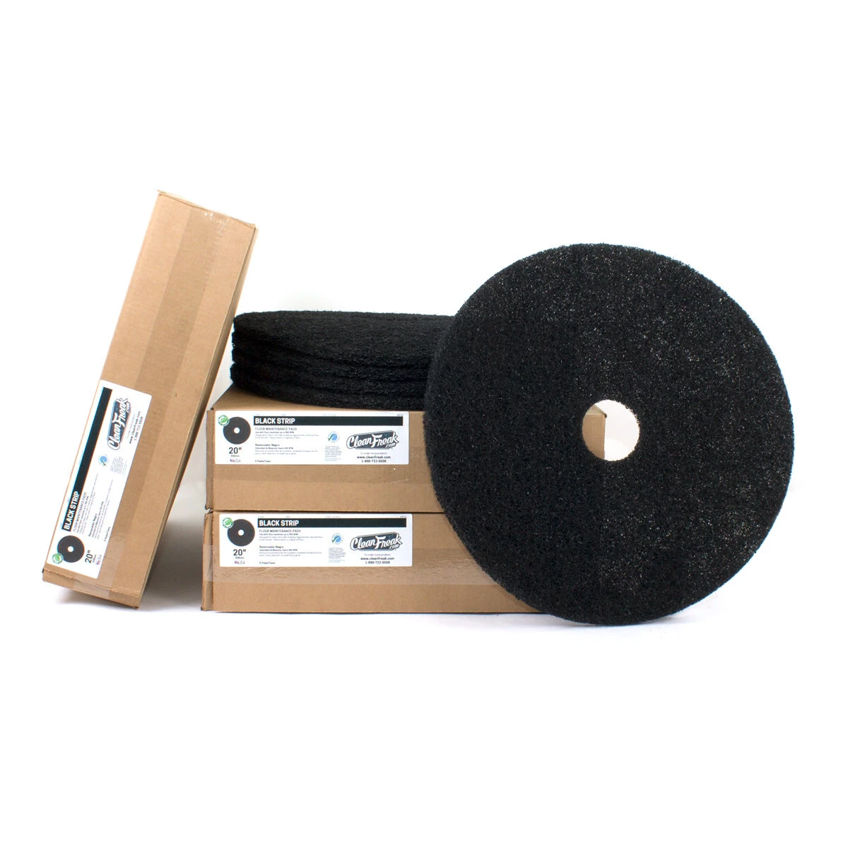 This 20 inch black floor wax stripping pad, is a thick pad that is aggressive, durable and consistent, for wet stripping applications. Each case contains 5 of these pads that are great for stripping commercially finished floors when used with our rotary floor scrubbing buffers and our automatic walk behind scrubbing machines. These black pads are constructed from polyester fibers and synthetic abrasives, which are distributed consistently throughout the pad for quick and efficient stripping applications.