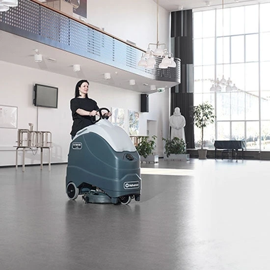 The Advance SC1500 is a unique riding scrubber that requires you to stand to operate. The SC1500 is designed to deliver superior cleaning performance by providing flexibly, extreme maneuverability and compact solutions for small to medium-sized areas. This standing model allows for the unit to be controlled effortlessly, while keeping a small foot print when compared to other bulky ride on floor scrubbers. For simple operation, all the scrubbing parameters like brush pressure, detergent flow, pressure, solution flow and vacuum are controlled by a single summary and are clearly displayed on the easy-to-read, LCD graphical display.