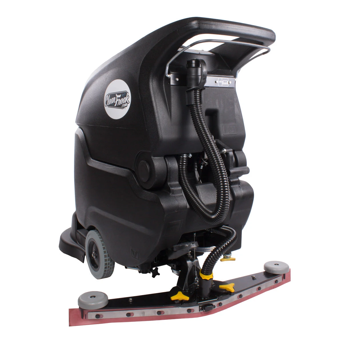 The beauty of the CleanFreak ‘Performer 20’ is its simplicity! Compared to other automatic walk-behind scrubbers in its category, the ‘Performer 20’ auto scrubber has fewer gizmos and gadgets, which equals fewer repairs and headaches down the road. A simple control panel features, a brush on/off summary, a vacuum on/off summary, a full recovery tank light, and an empty solution tank light. When the empty solution tank light comes on, there will be enough solution left for a full 2 minutes of scrubbing.