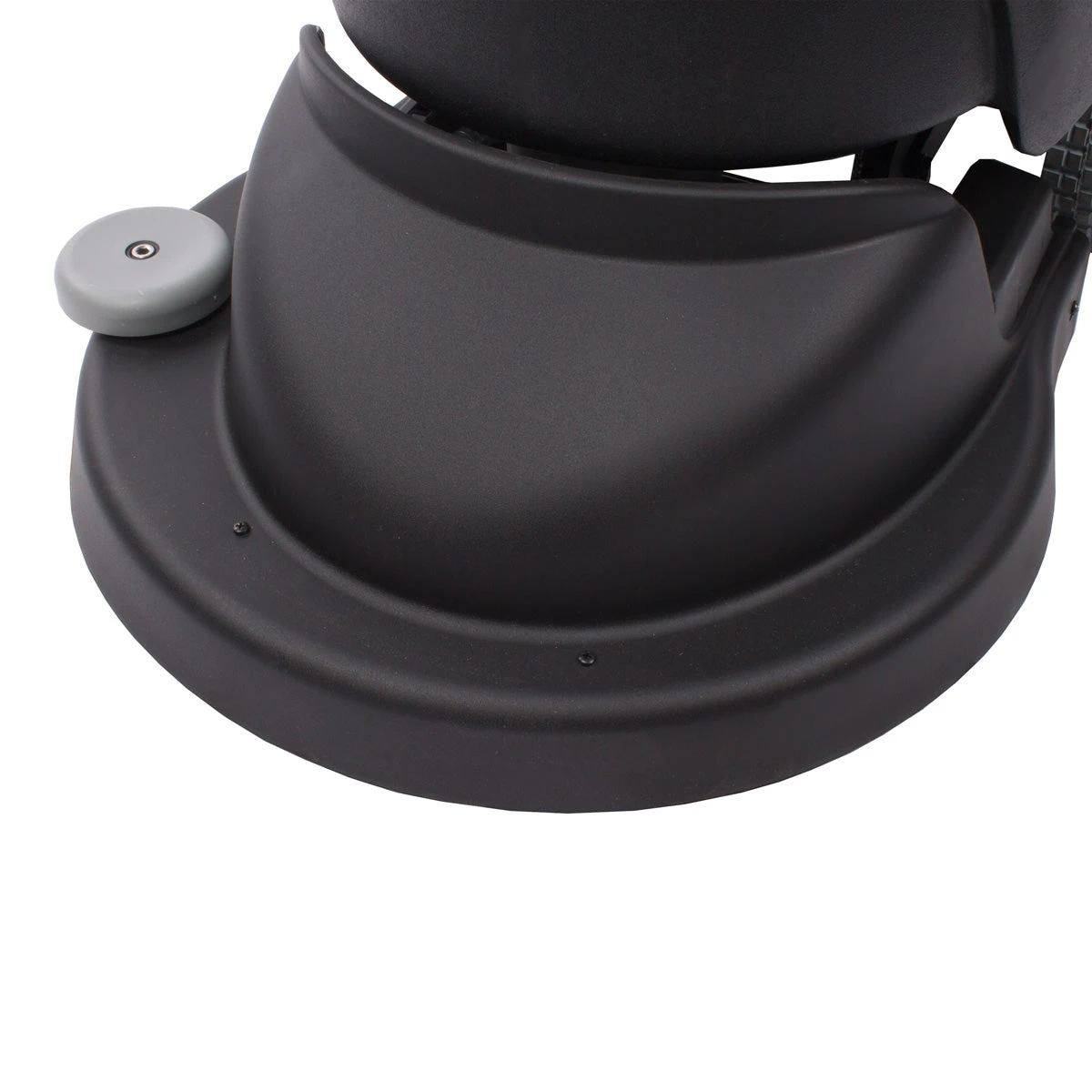 The drive for the machine is brush/pad-assisted and operated with a lever on the handle. Scrub pads and/or brushes need to be purchased separately depending on the type of flooring you need to clean. A pad driver does come standard with the machine. When the handle is released the machine continues to scrub and vacuum for a few seconds to recover all solution left on the floor. The solution control lever is located on the rear of the machine and is controlled by a solenoid.