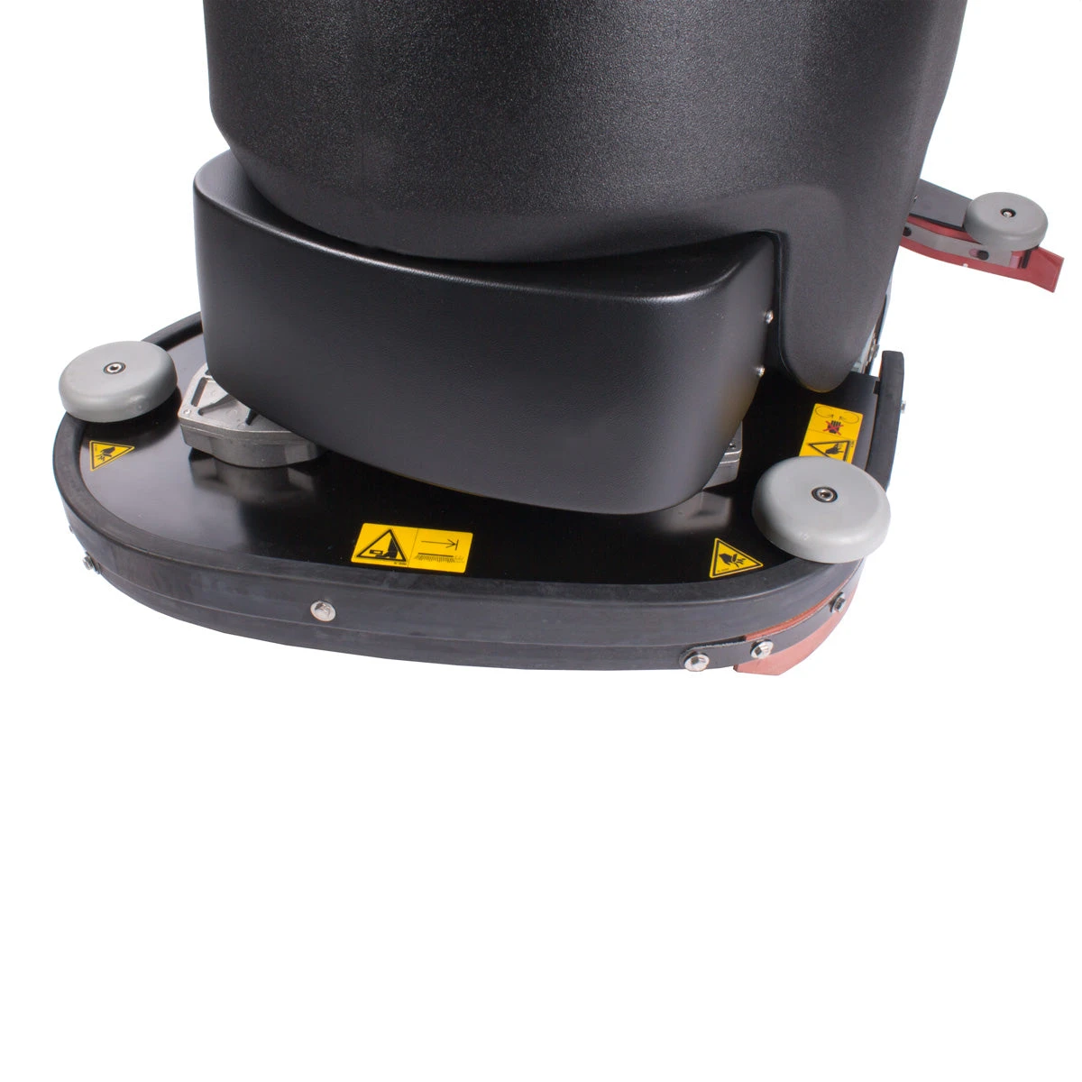 This 24″ walk behind scrubber comes with two 12″ pad drivers (please see the warning below) and is an industrially rated machine that will cover wide areas in a small amount of time. Scrub pads and/or brushes (nylon & tynex) need to be purchased separately depending on the type of floor you’ll be cleaning. The 19 gallon solution tank ensures you will have plenty of solution to scrub the widest areas, and be able to continue without stopping to refill. This is the only 24″ scrubber on the market that is a brush driven model. We have designed the entire system, so the two pad drivers or brushes essentially pull the machine along as you scrub. All you need to do is provide a little momentum, and guide it in the correct direction. You can essentially push the machine along with a single finger while it’s scrubbing!