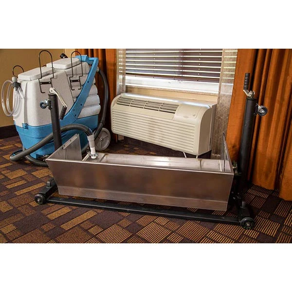 The unit tilts forward or backward and left or right to direct wastewater to the vacuum for constant waste removal during the cleaning process. It also has casters on both sides of the jacks for easy transport from room to room. The Cleaning Cradle can be used with any carpet extractor or multi-purpose cleaning equipment that pumps water and has a wet and dry vacuum system. While in the cradle, you can easily access and clean the rear condenser, the pan, the vent screen, the evaporator coil and more. This cleaning process is made even easier when using a wand like the 25′ pre-spray extraction wand.