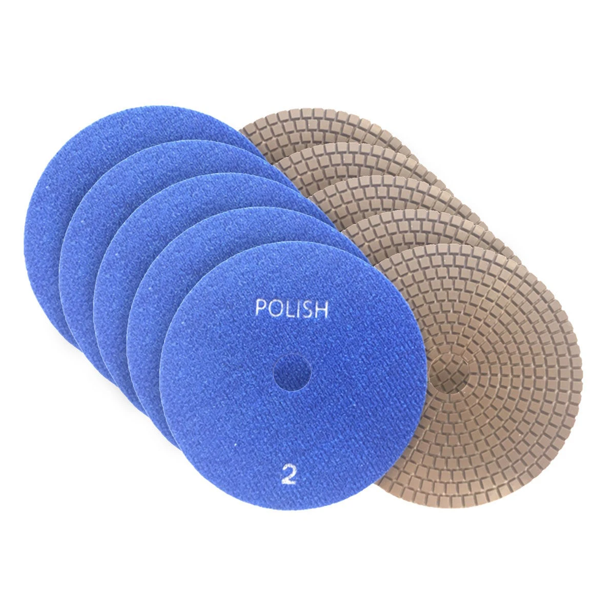 The polishing portion of the process starts with Polish 1 discs, which are 400 grit, and will polish your floors to a flat, matte finish. After the initial 3 steps, there are 3 additional polishing disc steps, and you can choose your desired level of gloss. The Polish 2 discs are 800 grit and will polish your floors to a semi-gloss finish. The Polish 3 discs are 1800 grit and will polish your floors to a high gloss finish. The Polish 4 discs are 3000 grit and will polish your floors to an ultra-high gloss finish.