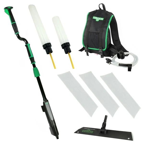The Unger Excella floor wax backpack applicator is your answer to making floor wax application a breeze. Unger has built this kit with ergonomics in mind to make it the safest and most efficient floor finishing option around. The kit comes in a 18 inch head model or a 24 inch model. The applicator pole is can be adjusted from 48 to 65 inches, has rubber coated non-slip dual swivel handles, and is offset to make stearing the unit easy and comfortable.